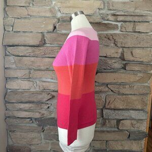 Banana Republic XS Color Block Sweater Pink Red Orange Stripe Merino Wool Blend