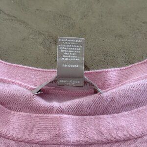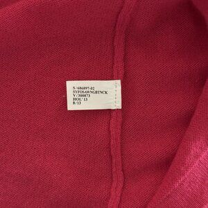 Women’s Banana Republic long sleeve pullover sweater in a bold and vibrant color block design. Features wide horizontal stripes in shades of pink, orange, and red. Soft and lightweight knit made from a luxe merino wool blend.