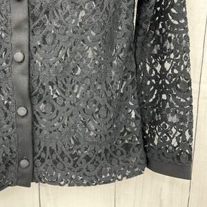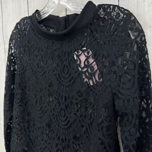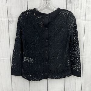 Banana Republic XS Petite NWT Black Scallop Lace Long Sleeve Sweats Blouse Top