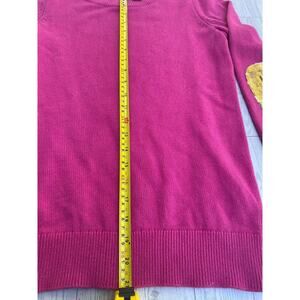 Gorgeous Banana Republic women’s sweater in a bold hot pink shade with gold sequin elbow patches for a chic, playful touch. Made from a soft cotton-wool blend, this pullover is warm, comfortable, and perfect for the fall and winter seasons.