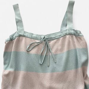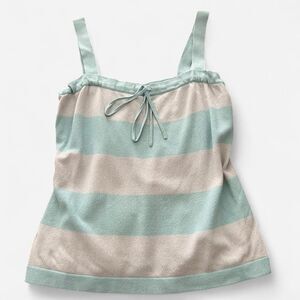 2000s baby blue aesthetic 💙 Banana Republic vintage babydoll tank with bow tie front and wide white stripe pattern. Size Medium, used good condition.