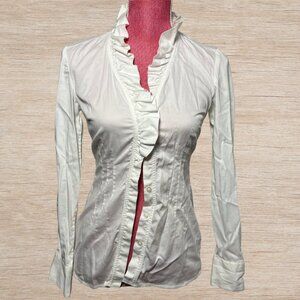 Banana Republic Y2K Office Siren White Button Up Ruffled Blouse Size 0