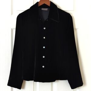 Banana Republic Y2K Vintage Silk Blend Velvet Long Sleeve Button Down Top Black