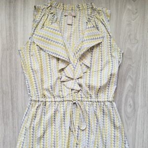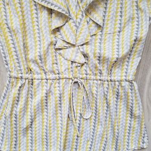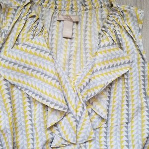 Banana republic XS yellow top ruffle front triangle pattern sleeveless blouse.