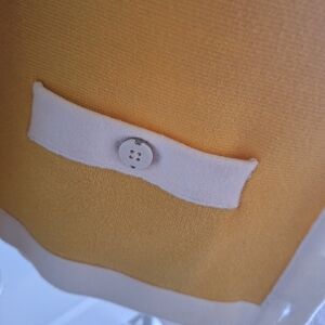 Chic yellow cardigan with white trim. Features button-down front. Ideal for layering. Thick material. Preloved but in very good pre-owned condition. Smoke and pet-free environment. Measurements approx.in inches taken flat.