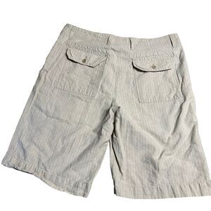 Banana Republic beige striped cotton linen blend flat front shorts with hip and back pockets in great condition