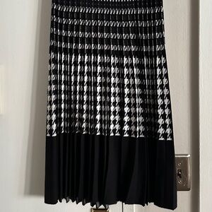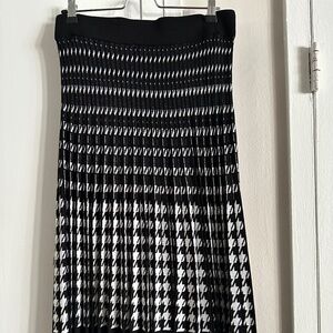 Banana Republic black and white plisse houndstooth midi skirt Sz M