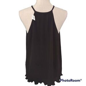 Banana Republic black ribbed ruffled hem spaghetti strap tent tank top