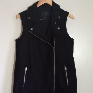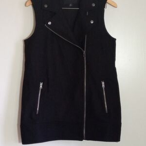 Banana Republic black wool longline moto vest in women's size medium. Excellent pre-owned condition with no flaws noted.