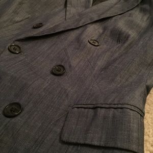 New! Blue/grey textured Banana Republic blazer with buttons. Cotton/Elastane shell. Lined. Buttons in front and sleeves.