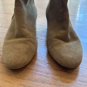 Hello sole mates! Very good condition. Suede booties by BR. Has outer side zippers and 2 inch heel. Rounded toe box. From a non-smoking-smoking home.
