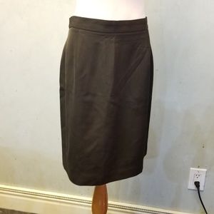 In great condition brown pencil skirt with a back zipper and a button. the waist is 14in the hip is 19 1/2in and the length is 19in