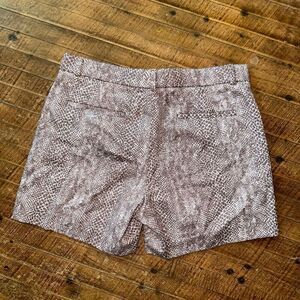 Banana Republic snakeskin print, textured, flat front, preppy, normcore, trendy shorts. Pairs well with a blouse or basic tee. Approximately 15.5 inches across the waist, 10 inch rise, and 5 inch inseam. In good, used condition. From a pet and smoke free house.