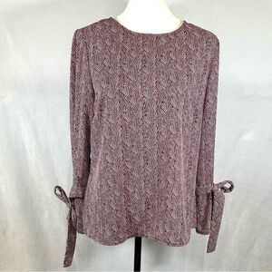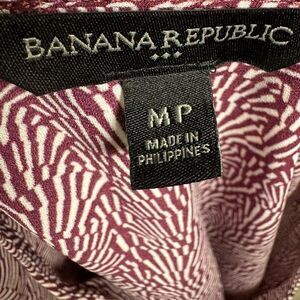 Banana Republic burgundy and white long tie sleeve blouse top size medium petite
