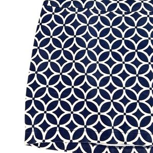 Stylish banana republic navy and white geometric patterned mini skirt perfect for any occasion. Stretchy. Side zip entry. Elevate your wardrobe with this chic design. Euc