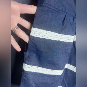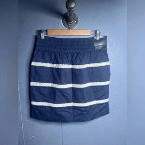 Banana Republic elastic waist skirt. Size 4. Chambray dark denim colored skirt with white lace thin stripes. Has deep pockets.