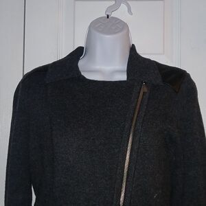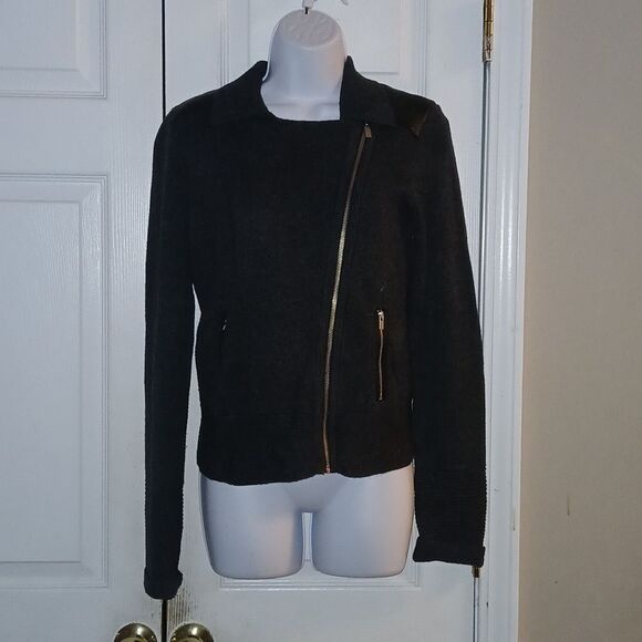 Banana Republic charcoal gray black zip up wool blend leather patch sweater cardigan