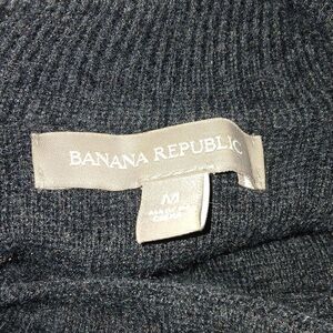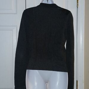 Banana Republic charcoal gray black wool blend leather patch cardigan Sz M