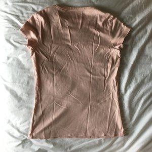 Super comfy and soft fitted tee in pastel peach color. 100% cotton. Minimal wear