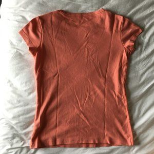Super comfy and soft fitted tee in peachy/coral color. 100% cotton. Minimal wear