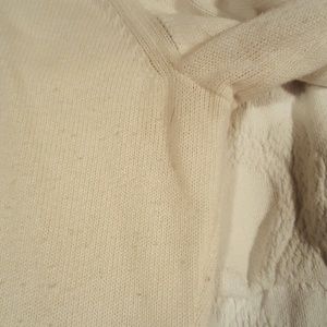 Cute cream cowl neck sweater with gold buttons. This is a repost as I didn't like the gold buttons, or gold of any kind for that matter. Slight piling under arms shown in last pic. Cute on.