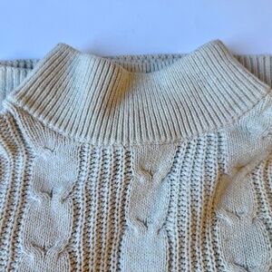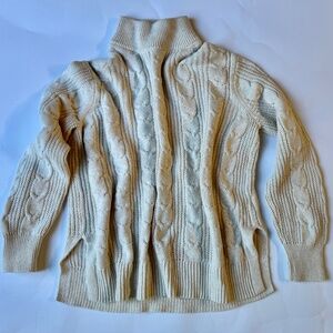 Banana Republic cream cable knit sweater. With side slit. In good used condition. Worn 5-7 times. 60% cotton/40% nylon