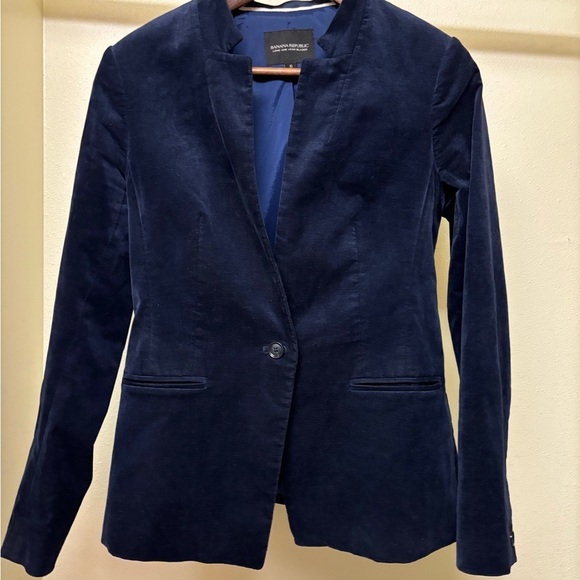 Absolutely gorgeous. Excellent condition. Elevate your style with this elegant navy blue blazer from Banana Republic. Perfect for any occasion. Crushed velevet feel.