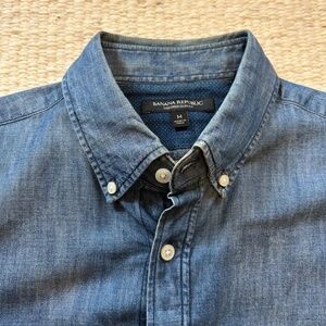 Banana Republic denim shirt w/ wabash pattern inside sleeve - slim size medium