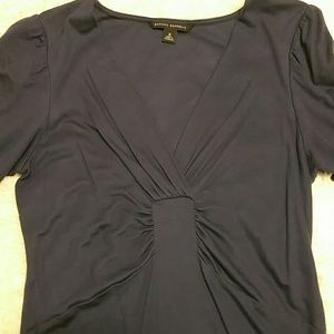 Banana Republic dressy deep v- neck top with shirred detail in navy blue. Size M. Soft and yet comfortable. 70% rayon and 30% lyocell. Machine wash cold. Dress up or down with simple jeans or cute skirt. Bit of loose titching on the back of neck area(pic 6)
