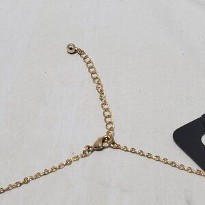 Elegant Banana Republic gold-tone necklace featuring a 27-inch chain adorned with delicate textured accents. The design includes a chic 5-inch drop chain, complemented by a 2.5-inch extender for adjustable length. Perfect for layering or wearing as a statement piece with any outfit."