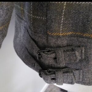 Faux fur is fabulous on the collar of this cozy coat! The beautiful tweed has multiple colors running through it that complement the green and yellow plaid. The inside is lined with a bright pop of chartreuse. The sleeves feature a zipper, and the waist is accented by 2 buckles on either side.