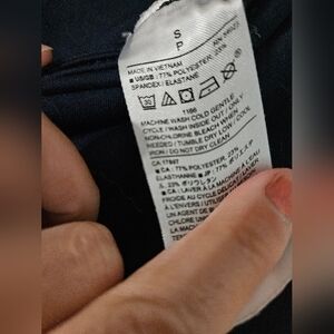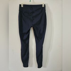 banana republic high rise legging. full length, has a lot of stretch, good thicker material. navy. hidden interior waistband pocket. excellent condition