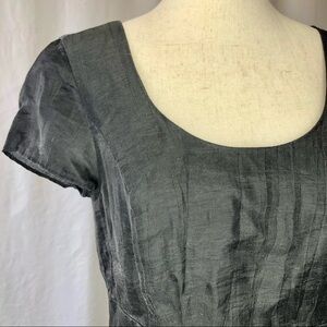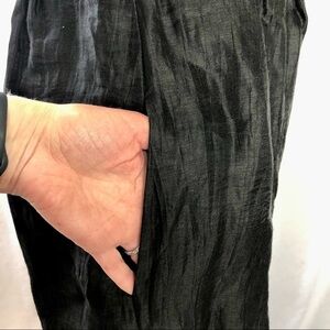 This fabric looks like a shiny raw silk but it’s actually linen. Fully lined except for semi-sheer sleeves