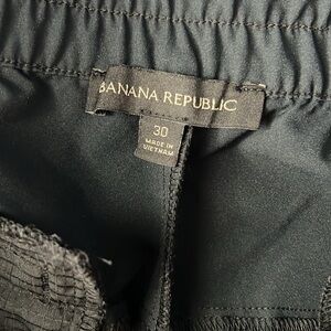 Banana Republic men’s black jogger pants size 30 excellent condition waistband lying flat measures 15 inches. Rise measures 10 inches. Inseam measures 27 inches