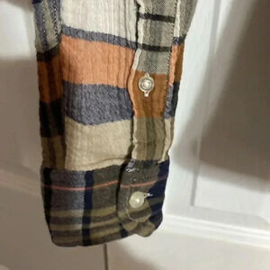 Cotton plaid button down shirt - 3 button cuffs. Approximate Measurements Laying flat: pit to pit - shoulder to hem - sleeves. Preowned good like new used condition please check all pictures.
