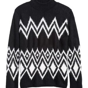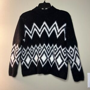Black and white fuzzy and soft sweater with mock neck. Size is small petite.