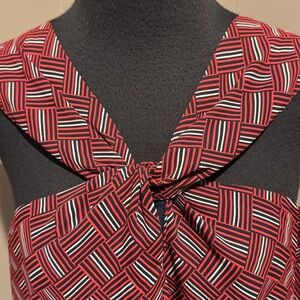 Banana Republic navy/red geometric lattice print lined twisted strap lined top
