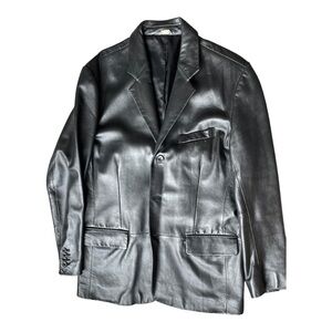 Black soft leather blazer Sz L (Men’s) perfect for oversized look. Fully lined front pockets and 3 front button closure. In great condition!