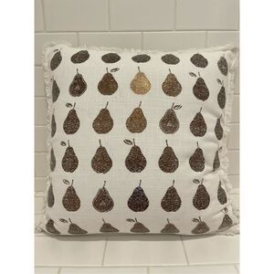 Gorgeous pillow from Banana Republic as part of special Christmas gift collection. Never used, pristine condition! Sequin details over partridge and gold pear details on opposite side. Lined with fringe, 18x18”