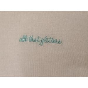 has "all that glitters" embroidered on the chest in metallic silver thread