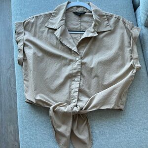 Banana Republic poplin cropped tie button shirt. Size small. Tan color. Excellent condition. Worn twice.