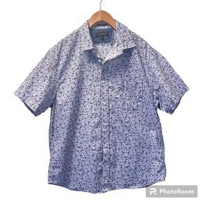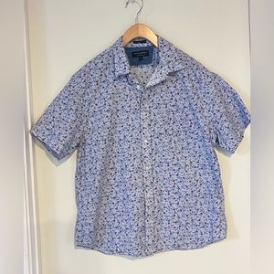 Banana Republic blue, white and brown floral pattern button down shirt, standard fit, size large, stretch, soft wash. Great preowned condition.