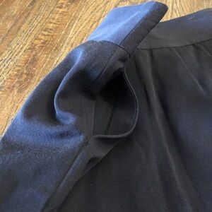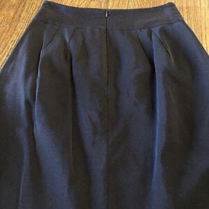 Classic Black A-Line Skirt. This versatile black skirt features a flattering A-line silhouette, a comfortable wide waistband, and subtle pleating or gathering at the front, adding a touch of volume. It has side pockets for practicality. Perfect for a polished and effortless look, suitable for both casual and semi-formal occasions!