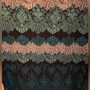 Nice fabric with stretch that lays well on the body and not constricting. Just a nice, soft drape.