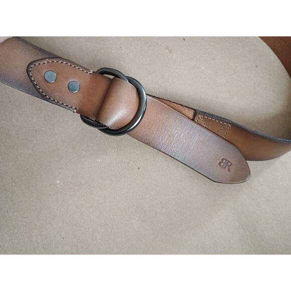 Banana Republic slider Brown Leather Double D Ring Belt M 34/36 BR logo