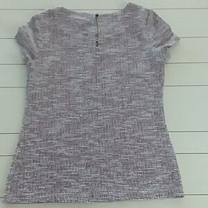 Banana Republic size small red white navy metallic short sleeve top. Excellent used condition. Smoke-free pet friendly home. The top has a little bit of a silver metallic weave in and out throughout the fabric. approximate measurements leave 6 in pit to pit 17 and a half in length from top of shoulder to bottom hem 24in. Top short sleeve metallic Navy white red small Banana Republic
