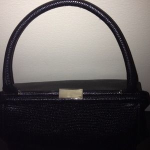 Adorable structured satchel - cute as a button and perfect for a classy lady. The smaller size is great for a date or works well when you're dressed up in your bet LBD!