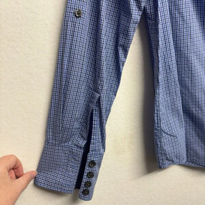 Banana Republic snap front shirt blue plaid check M women’s collared
