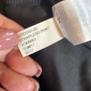 This is your typical strapless little black dress. It isn’t lined, but hangs nicely because of the material quality. Pretty accents around the neckline & dress feels really nice on. This is a great piece to have in your closet, as can be worn for many occasions, dressed up or dressed down. Banana Republic size 2. The condition is good -no flaws, but definitely needs to be steamed or dry cleaned.