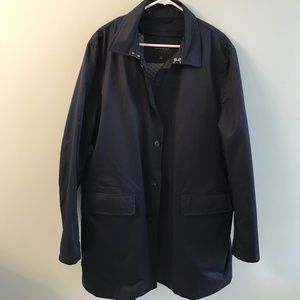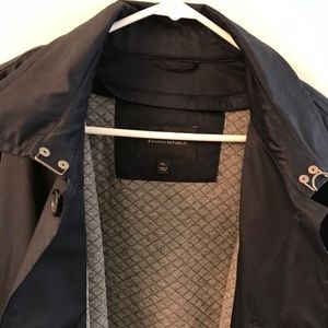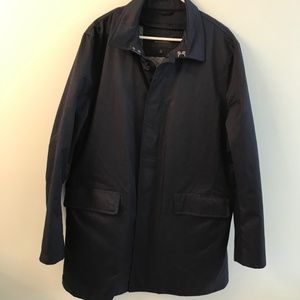 Size XL dark navy blue color great condition... lining quilted grey... 2 pockets with buttons... one pocket inside.. pit to pit approximately 25.5”.. length 37”.. sleeves 27”